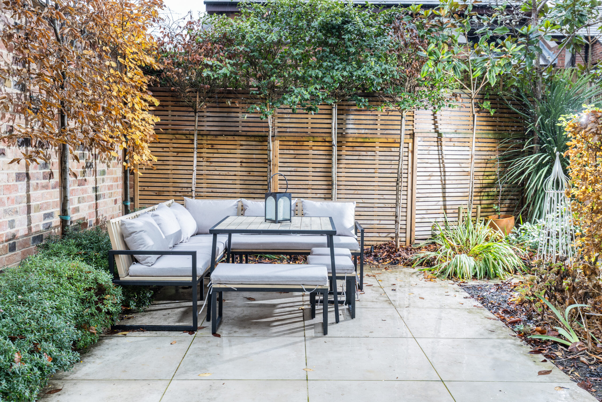 Dine al fresco or simply enjoy the fresh air in this beautifully furnished, paved garden, surrounded by trees and greenery.