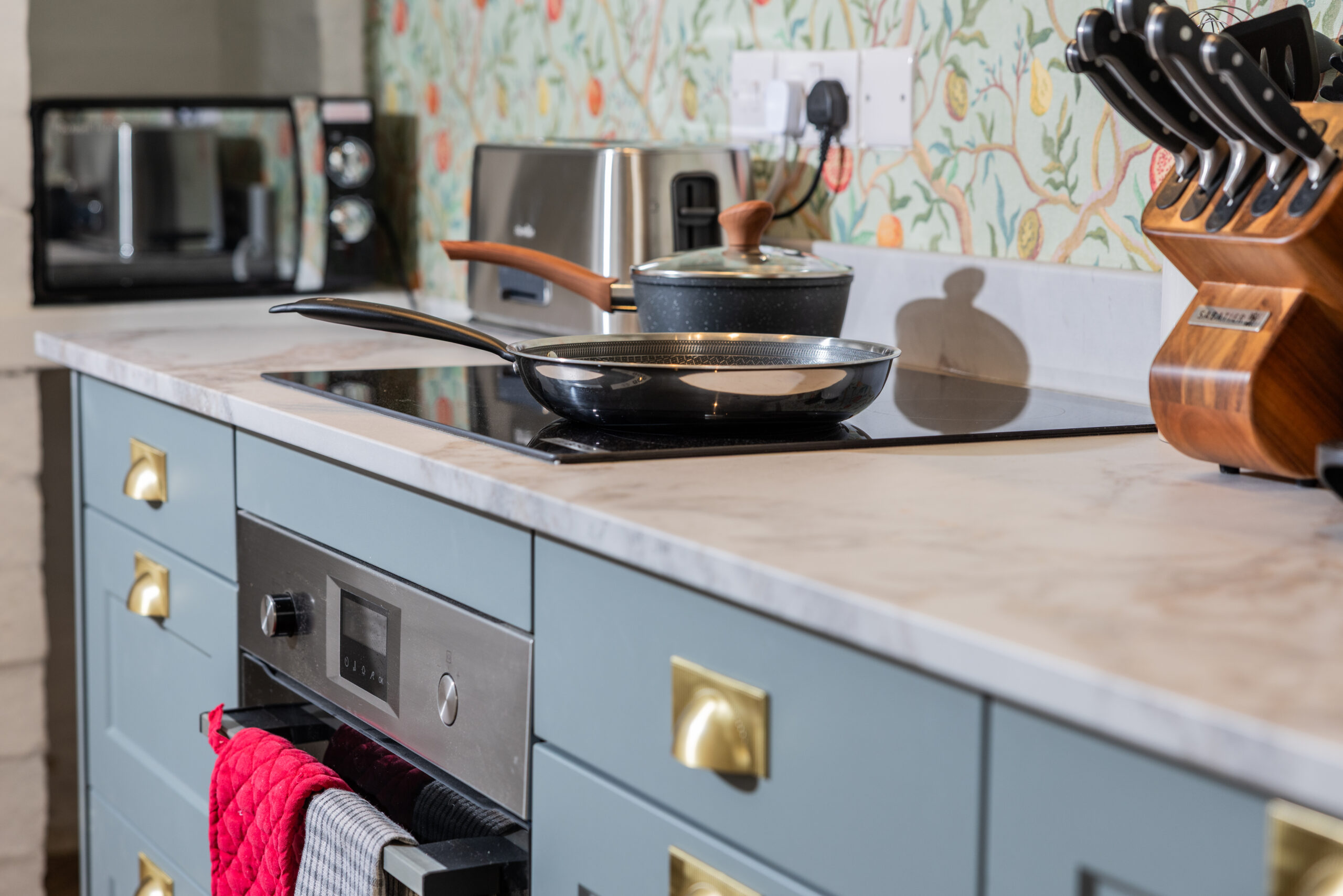 Fully-equipped and fixed with a stunning new kitchen units and marble countertops, this kitchen makes cooking a dream.
